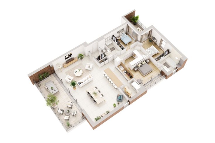 Caractéristiques générales : Hall d'entrée, 2 WC séparés avec lave-mains, 3 chambres dont une avec dressing et salle de bain avec baignoire, salle de douche, meuble vasque et miroir avec éclairage dans chaque pièce d'eau, séjour avec cuisine équipée ouverte, buanderie, balcon, 2 terrasses et ascenseur.