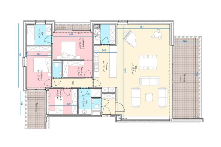 Appartement 3 chambres dans le nouvel écoquartier, véritable oasis de calme et de verdure, à l’orée de la Ville de Tournai.