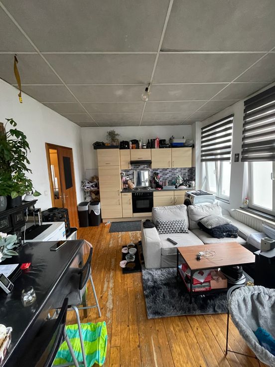 Composition: Situé au deuxième étage d'une petite résidence sans ascenseur, appartement de 40 m² composé d'un hall, une pièce séjour/cuisine, une chambre, salle de douches et petit balcon. Particularité: Excellente situation, rue de la Cathédrale, à proximité de tous. Très bon PEB de classe B. Loyer de 500 euros + 100 euros de charges (eau et chauffage), compteur électrique individuel.