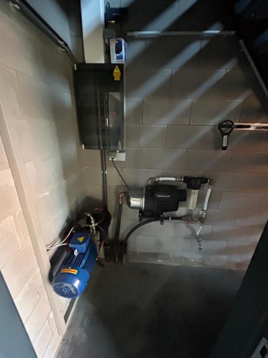 Eerste verdieping is bereikbaar met vaste trap en goederenlift tot 500 kg, sectionaalpoort, vrije hoogte van 2,8 m, poly-beton vloer, veel lichtinval, TL verlichting, regenwater, alarm.