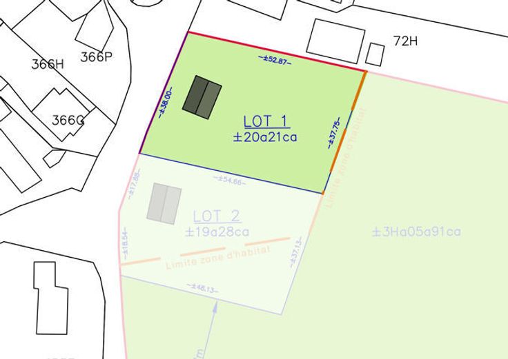 Frais de mesurage et de bornage à charge de l'acquéreur - Plan de division à titre informatif et non contractuel.