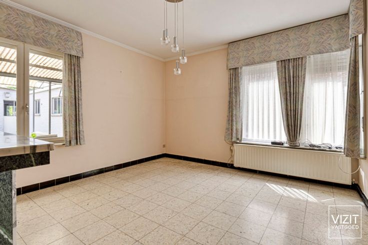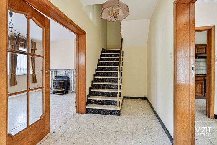 Deze op te frissen woning is gelegen in Appelterre-Eichem (Ninove). De indeling op het gelijkvloers omvat een inkomhal, een woonkamer (22 m²), een eetkamer (17 m²) en een keuken (9,5 m²). Op de eerste verdieping bevinden zich een nachthal, een badkamer en drie slaapkamers (21 m², 15 m² en 10 m²). De tweede verdieping bestaat uit een zolder met vaste trap (51 m²), met mogelijkheid tot extra slaapkamers. Naast de woning is er een ruime garage met werkput (26 m²) en een achtergelegen werkhuis (18 m²). Er is ook een buitentoilet en een mooie tuin met landelijk zicht, inclusief uitzicht op de windmolen van Appelterre-Eichem. De woning is voorzien van centrale verwarming op aardgas. Dit pand is onderhevig aan de renovatieplicht. Bekijk de virtual tour en de documenten op www.vizitvastgoed.be. VCRO: Wg/Wglk/Vg/Gvv/Gvkr/Gmo - A score: C - P score: C