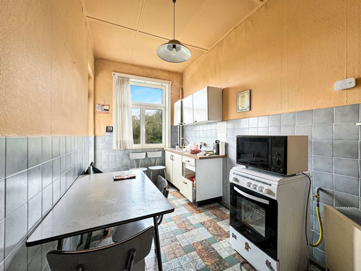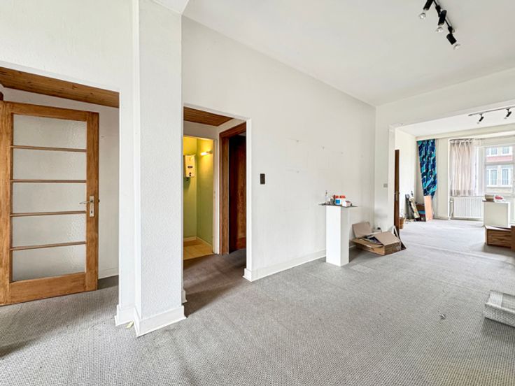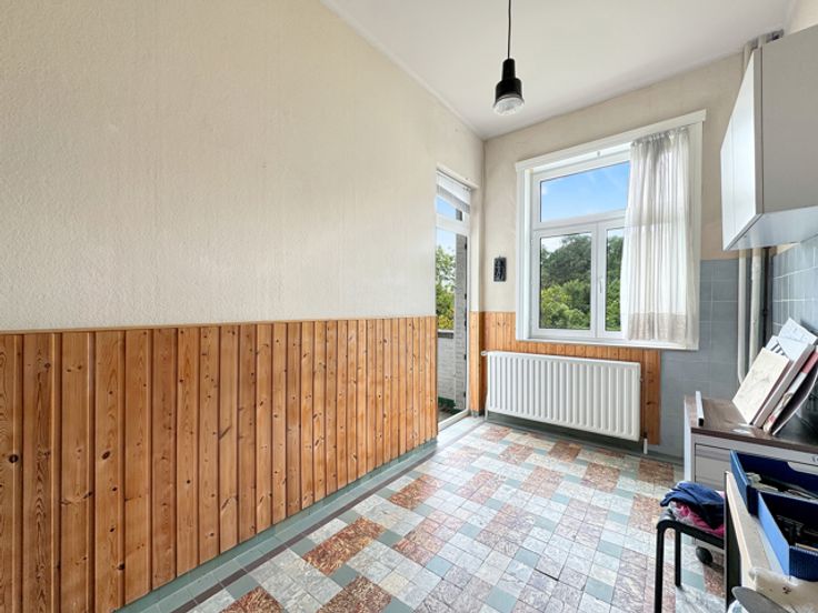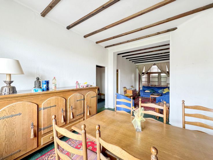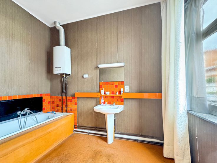 Neder-Over-Heembeek, Marjolainestraat 10: te renoveren gebouw bestaande uit 2 eenheden. Op het gelijkvloers een grote garage (35m²) met toegang tot de tuin op het ZW, parking vooraan en verschillende kelders. Op de 1ste verdieping een appartement van 63m² bestaande uit 1 slaapkamer (18,82m²), een woonkamer (14,75m²), een eetkamer (13,30m²), hal, keuken (9,13m²) met toegang tot terras (3,90m²), doucheruimte en aparte wc. Op de 2de en 3de verdieping een duplex van 115m² bestaande uit een woonkamer (14,02m²), eetkamer (13,60m²), keuken (9,16m²) met toegang tot terras (3,90m²), hal, 2 wc, 2 slaapkamers (16,65-15,33m²), bureau en zolder (15,20m²). Houten ramen met enkel glas. Goede investeringsmogelijkheid, transport en winkels dichtbij. Informatie en bezichtiging CENTURY 21 Best House 02 268 21 50
