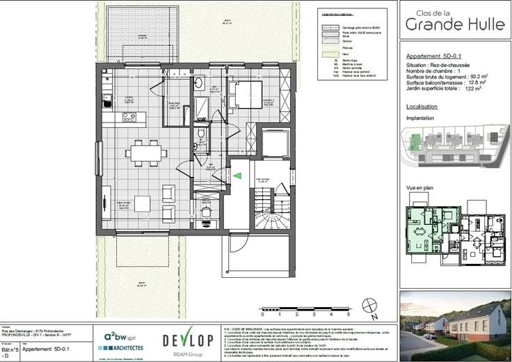 Sorry er is geen nederlandse vertaling beschikbaar. Situé dans un cadre calme et agréable , au rez-de-chaussée, spacieux et lumineux appartement de standing de 93,2m², 1 ch, terrasse de 12,8m² et jardin de 122m², bénéficiant de tout le confort moderne (cuisine équipée salle d'eau, buanderie , panneaux solaires, châssis DV, VMC double flux, isolation acoustique et thermique). Parking et cave en supplément. PEB A (provisoire). Vente sous Loi Breyne. Droits d'enregistrement 12.5% sur le terrain et tva 21% sur la construction. Livraison septembre 2024. Pour plus de renseignements: www.winstone-immo.be ou via le 0800 17 977.