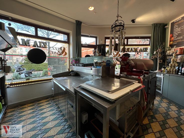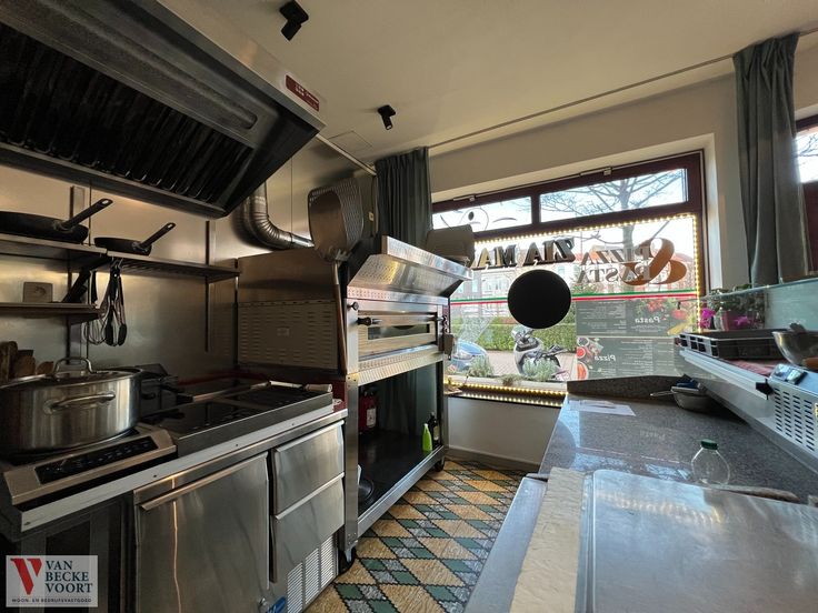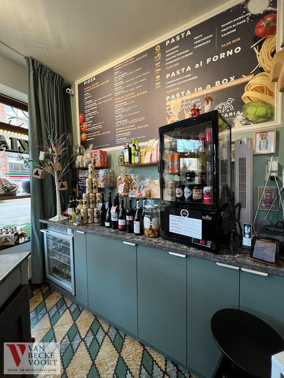 De charmante verkoopruimte is voorzien van professionele apparatuur. Onder meer: koeltoog, kassasysteem en pizza-oven waar maar liefst 6 pizza's tegelijk kunnen worden afgebakken.