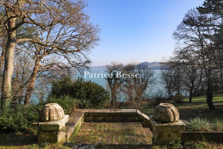Pour descendre vers le rivage, une voie privée à l'accès confidentiel permet au visiteur de découvrir progressivement le panorama sur la baie. Un chemin sinueux mène à un portail de bois encadré de pilastres qui ouvre sur le parc. Un muret de pierre sépare la propriété du cheminement public piéton qui la longe.