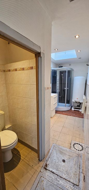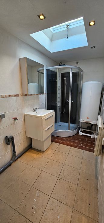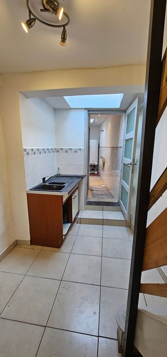 Elle se compose au rez-de-chaussée d'un salon, d'une cuisine semi équipée, d'une salle de douche avec douche, chauffe-eau, lavabo et wc.