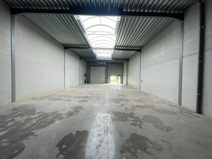 * VERKOCHT * Unit 4 van 244m² magazijn met 2 parkeerplaatsen te koop in kwalitatief KMO Project Riva te Dentergem.