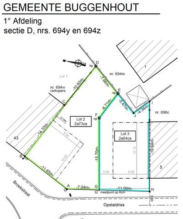 Bouwgrond Lot 2 voor een half-open bebouwing: 2 are 73 ca (vraagprijs: 135.000,- EUR).