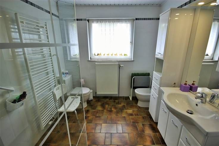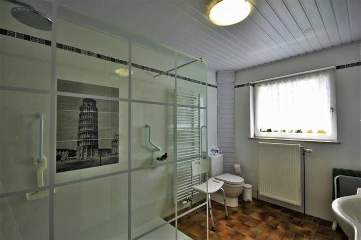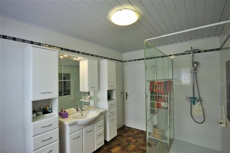 Au rez-de-chaussée, présence également de 2 chambres, une salle de douche (neuve 2021), un débarras et un WC séparé.
