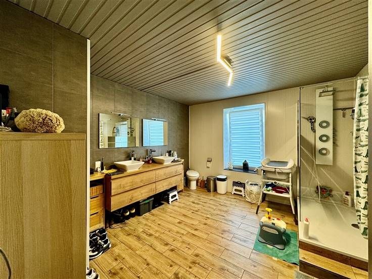 Sorry er is geen nederlandse vertaling beschikbaar. Home Sweet Gaume à le plaisir de vous présenter cette maison située à proximité du centre de Virton. Vous profiterez au rez-de-chaussée, d'un salon, d'une salle à manger, d'une cuisine et d'une buanderie. Le 1er étage vous offre 1 chambre et une grande salle de douche refaite à neuf en 2020 avec un WC et un lavabo. Pour finir, le 2ème étage vous offre 2 chambres mansardées. Une cave et une terrasse avec un atelier complètent ce bien. Les châssis sont en double vitrage bois de 2006 (PVC à l'arrière) et pour le chauffage vous disposerez de 2 poêles à pellets. La toiture est en ardoises naturelles refaite en 2019 et le certificat électrique est en demande. Intéressé ? Contactez nous ! Plus de détails : homesweetgaume.be Les informations fournies par l'agence ont un caractère indicatif et non contractuel. En conséquence, elles ne peuvent engager la responsabilité de l'agence et ne dispensent pas la personne intéressée de réaliser les vérifications.