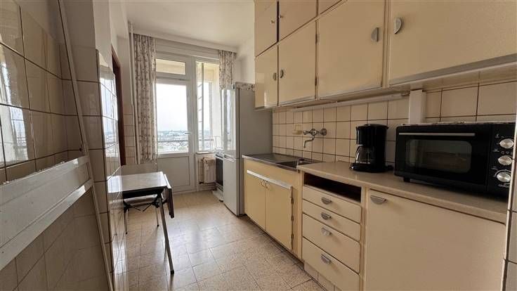 Op de 11e verdieping van dit goed onderhouden gebouw vinden we dit ruim appartement met 3 slaapkamers. Brede inkomhal van 11m², lichtrijke woonkamer van 30m² met overdekt terras van 10m². Vanuit de hal en de woonkamer is doorgang naar de keuken van 8m² met eigen terras van 4m². In de hal zijn veel bergkasten/vestiairekasten aanwezig. Apart toilet en badkamer met ligbad van 3m². Ruime slaapkamers van 18m², 10m² en 8,5m². Benieuwd naar dit appartement? Maak snel uw afspraak op www.immodelaet.be of op 036440088