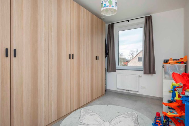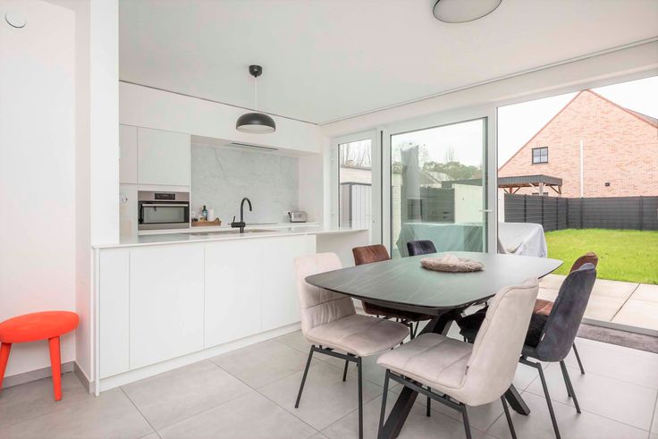 In een rustige, groene en kindvriendelijk straat treffen we deze woning. De bijna energieneutrale woning is voorzien van alle hedendaagse luxe en comfort, wat resulteert in een zeer weinig energieverbruik voor verwarming, ventilatie, koeling en warm water. De nodige energie hiervoor wordt geput uit de zonnepanelen geïnstalleerd op het dak van de woning. Reken dus op een zeer lage energiefactuur elke maand! U betreedt de woning via de inkomhal met gastentoilet, op de rechterzijde treffen we de ruime leefruimte. Plafondhoge raampartijen vullen de leefruimte met daglicht, de open keuken met kookeiland is voorzien van de beste AEG toestellen: inductiekookplaat, combi—oven, ijskast met diepvriezer en vaatwasmachine. In de zomer kunnen de grote schuiframen open en kan u meteen naar de tuin, ideaal om bij zomerse BBQ’s alles meteen naar buiten of binnen te dragen. Aanpalend met de keuken treffen we een handige berging met wasplaats. De eerste verdieping omvat 3 ruime slaapkamers en 1 badkamer dewelke is voorzien van dubbele wastafel, inloopdouche en ligbad. Op de hal treffen we een apart toilet. Tot slot beschikt de woning over een gezellig tuin en ruime oprit met garage. Goed om te weten: gelijkvloers voorzien van vloerverwarming, woning is beschikbaar vanaf 1 juni 2024.