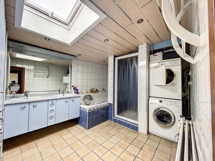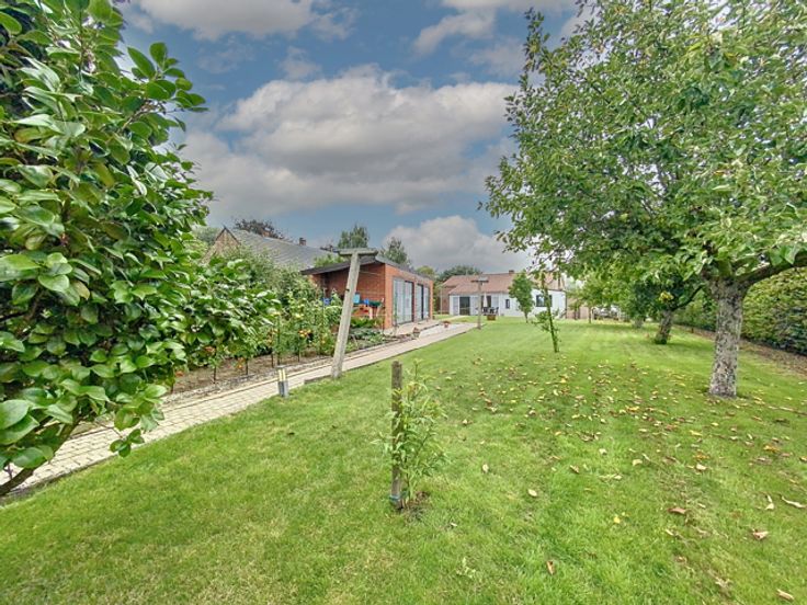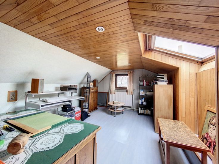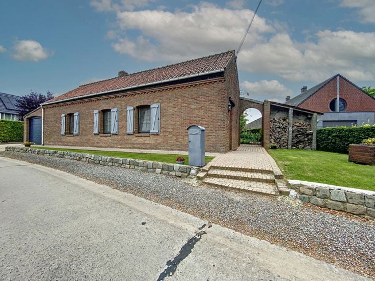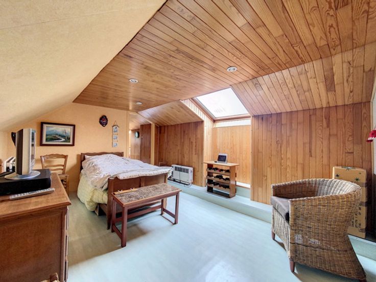 # Begane grond: inkomhal, woonkamer (salon met houtkachel en eetkamer), ingerichte keuken (keramische kookplaat, afzuigkap, gootsteen, oven, koelkast en veel opbergruimte), badkamer (bad, douche, 2 wastafels, ruimte voor wasmachine en droogkast), grote slaapkamer, bureau, aparte WC. # 1e verdieping: 2 grote slaapkamers, 1 kamer momenteel in gebruik als berging met watertoevoer en -afvoer (zou gebruikt kunnen worden als extra badkamer). # Buiten: mooi terras, tuin op het zuiden met bomen en omheining, 2 zijgangen, garage met gemotoriseerde sectionale deur en 2 parkeerplaatsen aan de zijkant van het huis, schuur van 25 m² (met elektriciteit en water) en nog een kleine schuur naast het huis. # Kenmerken: goede EPB, centrale verwarming op olie (tank van 2.300L), PVC ramen met dubbele beglazing (2011) met horren, Velux ramen met dubbele beglazing, volledige betegeling op de begane grond, geïsoleerd dak en kozijnen in goede staat, regenwatertank (10.000L) en waterput, alles aangesloten op een hydrofooreenheid. # Bescheiden KI (€544) met de mogelijkheid van een korting op de registratierechten in overeenstemming met de voorwaarden opgelegd door de autoriteiten. Meer informatie op onze website: www.dlgroupe.com Deze advertentie is niet contractueel en vormt geen aanbod. De eigenaars behouden zich het recht voor om elk ingediend bod te aanvaarden of te verwerpen.