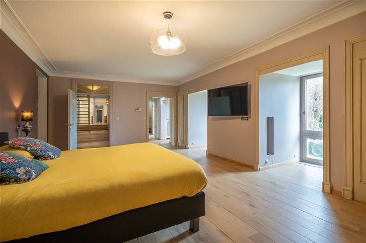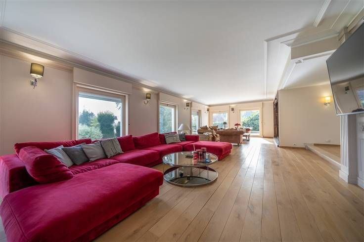 Een riante villa met een bruikbare vloeroppervlakte van 870m2 op een perceel van 32 are, rustig gelegen in een privaat domein (Vlieringenpark) op 2,5km van Halle centrum en op 10km van Brussel: