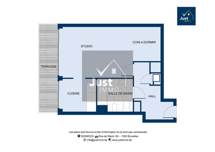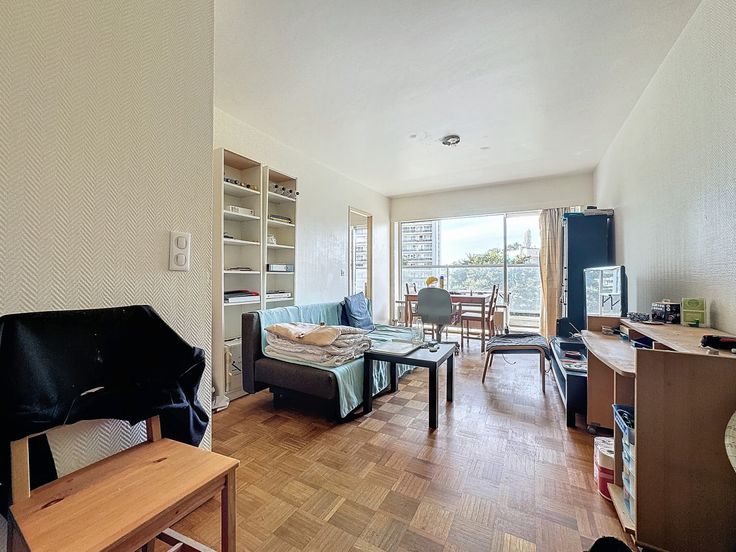Dicht bij alle voorzieningen, in een zeer goed onderhouden gebouw, op de 3e verdieping. Mooie studio van 38m² bestaande uit: een inkomhal met vestiaire, een leefruimte van 19m² met toegang tot het terras, een volledig ingerichte keuken, een badkamer met wastafel, hangtoilet en een wasruimte. Ideaal als investering: momenteel verhuurd voor 600€ (500€ + 100€ kosten). Goede PEB (D-). Voor meer informatie: 02/268.03.33 of 0489/87.67.84 – www.justimmo.be Transport: Bus, Tram, Metro, Autosnelweg . Financiële gegevens: Inhoud lasten, Bedrag lasten, Soort huurovereenkomst, Huurinkomen: 500 €, Huurwaarborg . Diensten: Ziekenhuis, School: m, Kribbe, Handelszaken, Cinema, Handelscentrum: m, Luchthaven . Muurbekleding: Geschilderd, Tegels . Vloer: Parket, Tegels . Ramen: Aluminium . Verwarming: Jaar verwarmingsketel, Type verwarmingsketel, Merk verwarmingsketel . Certificaten: Total énergie primaire: 8102 kwh/an, EPC certificaat nb., CO2 uitstoot: 42 Kg Co2m²an, Energieprestatiecertificaat: 208 Kwh/m², Niet conforme elektrische inst . Appartement: Kelder, Terras, Badkamer, Woonkamer, Keuken, Inkomhal