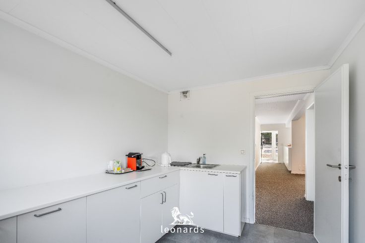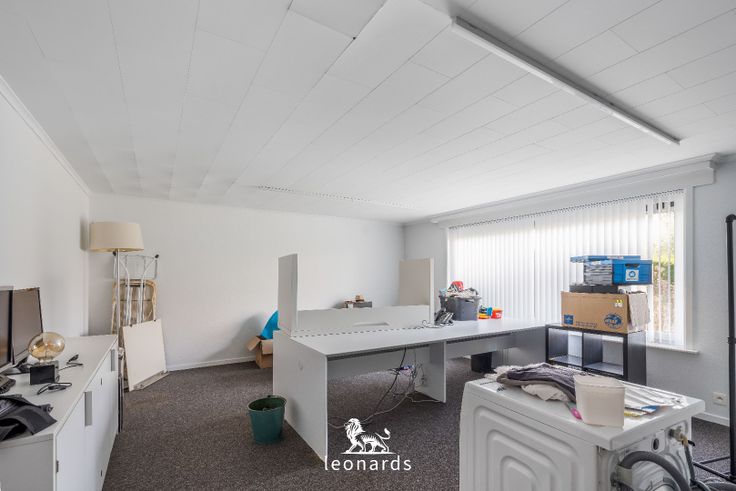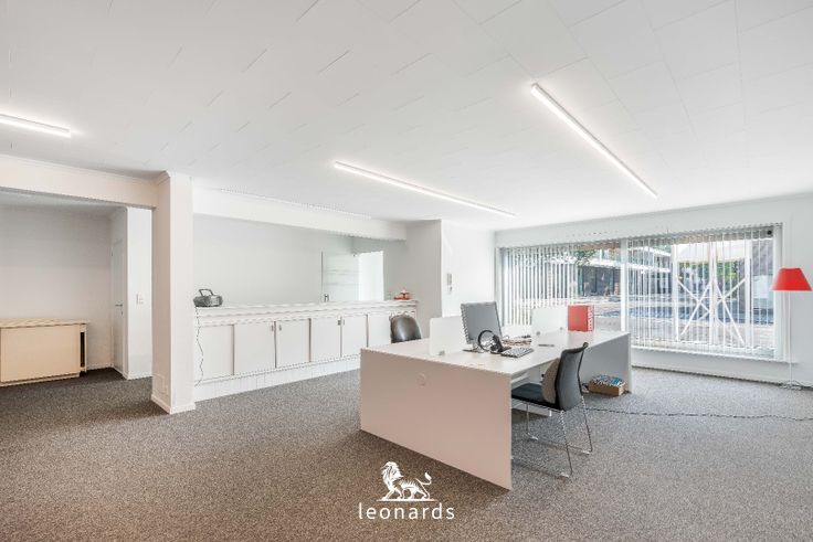 Het handelspand beschikt over een open (bureau)ruimte van 130m², die momenteel wordt gebruikt als kantoor, maar eenvoudig kan worden aangepast naar uw specifieke noden. De ruimte is praktisch ingericht met een aparte keuken, toilet, kelder, en een achterruimte die toegang geeft tot een aangename tuin. Daarnaast is er een ruime oprit met plaats voor vier voertuigen, wat zorgt voor gemakkelijk parkeren voor zowel u als uw klanten.