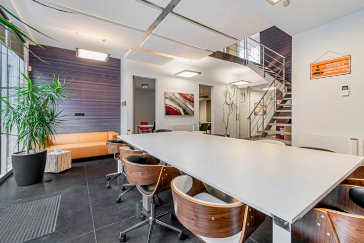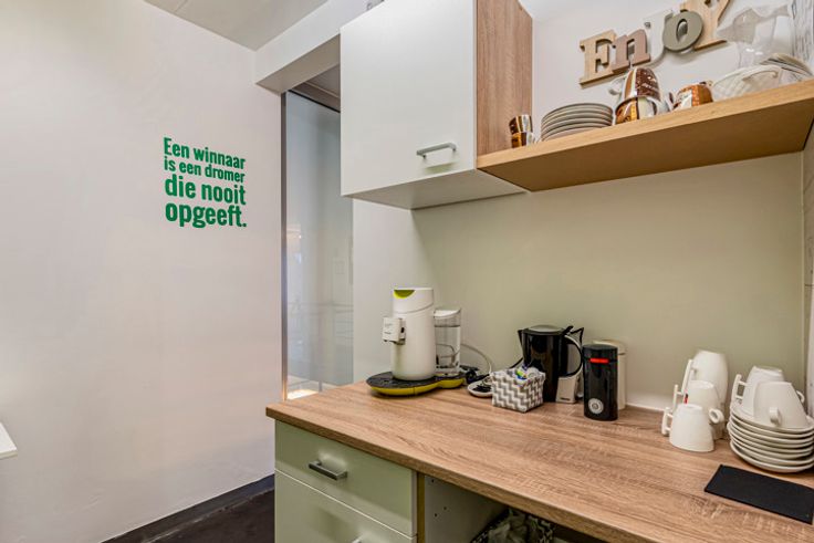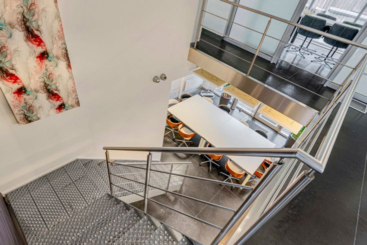 De eerste verdieping omvat enkele multifunctionele ruimtes (retail of kantoor) evenals een koffiehoek.