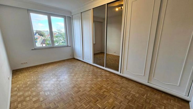 UCCLE - COGHEN. Situé dans un quartier très recherché de la commune et à proximité immédiate du Collège Saint-Pierre, des transports en communs et des commerces. Parvissimmo vous propose ce superbe et lumineux appartement situé au 5ème étage d'un prestigieux immeuble de style moderniste signé par le grand architecte belge Franssen. Rénové complètement en 2022, d'une superficie selon acte de base de 94,30m², il se compose d'un hall d'entrée avec vestiaire, toilette visiteur, séjour en parquet de +/- 36,50m² avec feu ouvert et avec accès à une terrasse avant offrant une magnifique vue, nouvelle cuisine ouverte AEG super-équipée (frigo, congel, four, micro-onde, lave-vaisselle, hotte, plaque de cuisson vitro). Hall de nuit, grande chambre de +/- 18,41m² avec placards et une seconde chambre de +/- 10,26m² avec accès à un balcon arrière offrant également une vue incroyable sur le jardin commun. Salle de bain avec douche et baignoire séparée, un emplacement est aussi prévu pour la machine à laver. Au RDC: une chambre/bureau de +/- 14m² avec toilette, lavabo et douche (possibilité de profession libérale). A l'arrière, un box de garage N°9 en option à 35.000€. Au sous-sol: 1 cave N°14. Magnifique grand jardin communautaire accessible. PEB D-. Châssis en pvc double vitrage de 2022 avec volets électrique, screen, électricité conforme, concierge, toiture isolée, chauffage au sol, chaudière commune au gaz(2021). Charges mensuelle et FR de +/-300€. Superficies données à titre indic