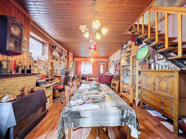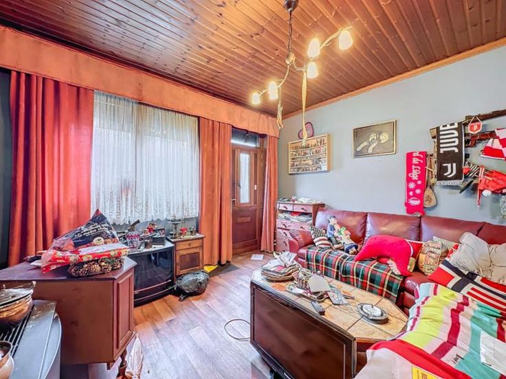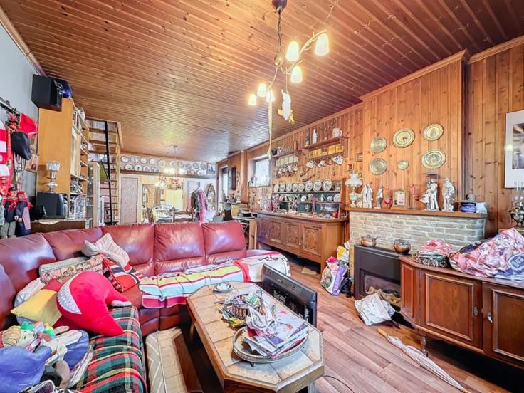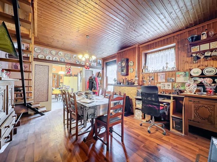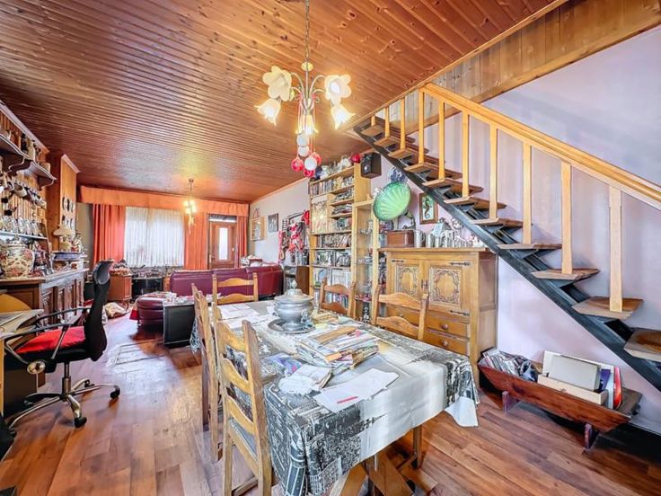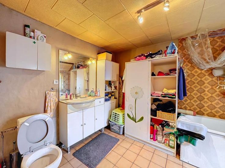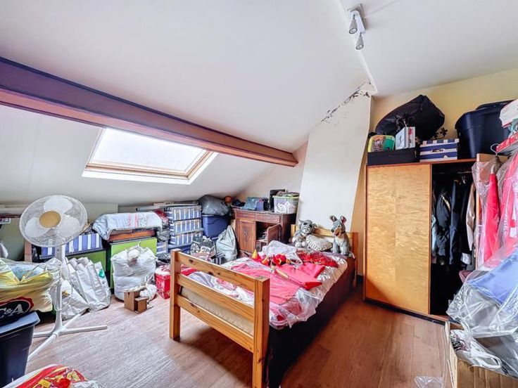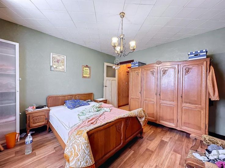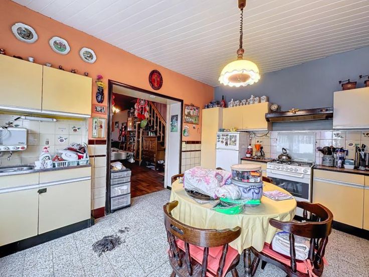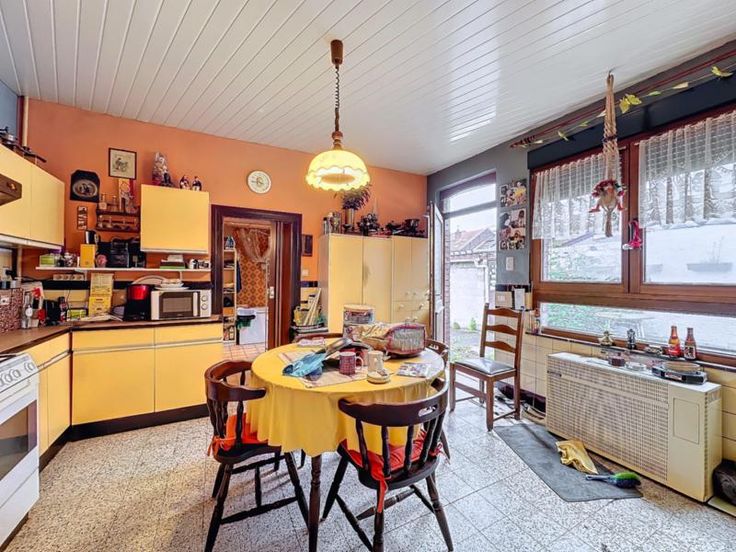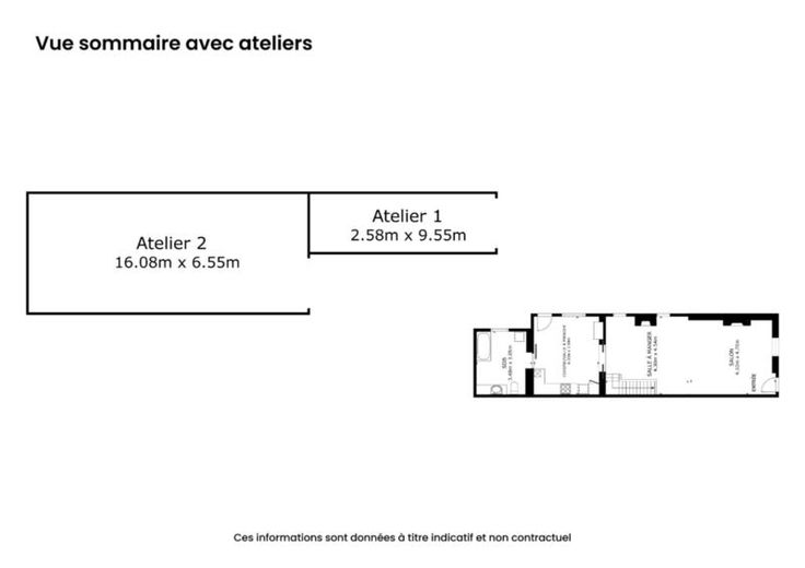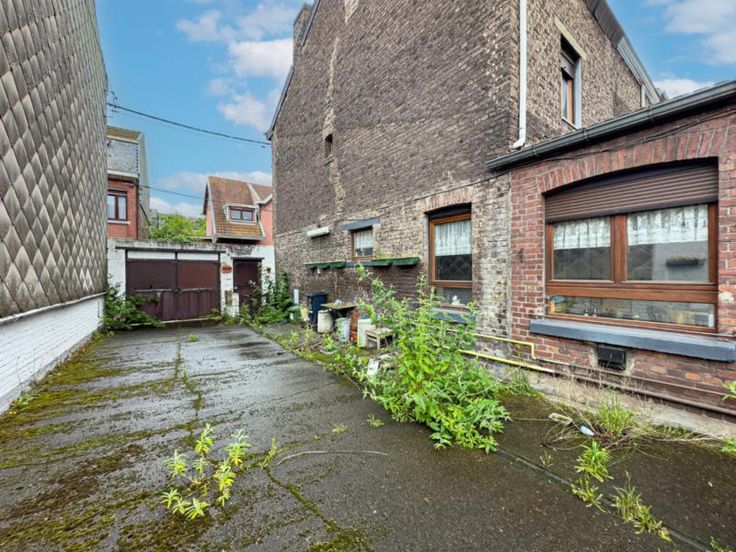 maison 3 façades avec terrain (cour et jardin) et entrepôt de 440m² comprenant: au rez-de-chaussée: séjour, cuisine semi-équipée, salle de bains au sous-sol: une cave au 1er étage: 2 chambres dont une permettant l'accès au 2ème étage qui comprend une grande pièce avec vélux (chambre 3) Pas de chauffage central