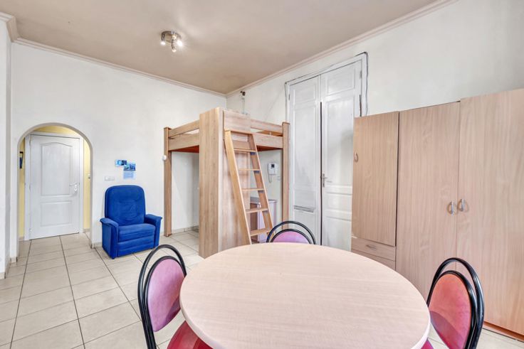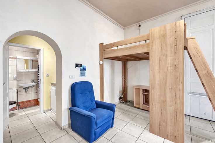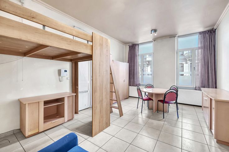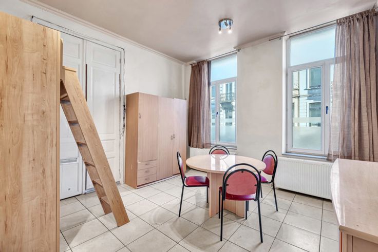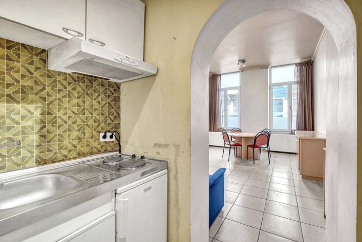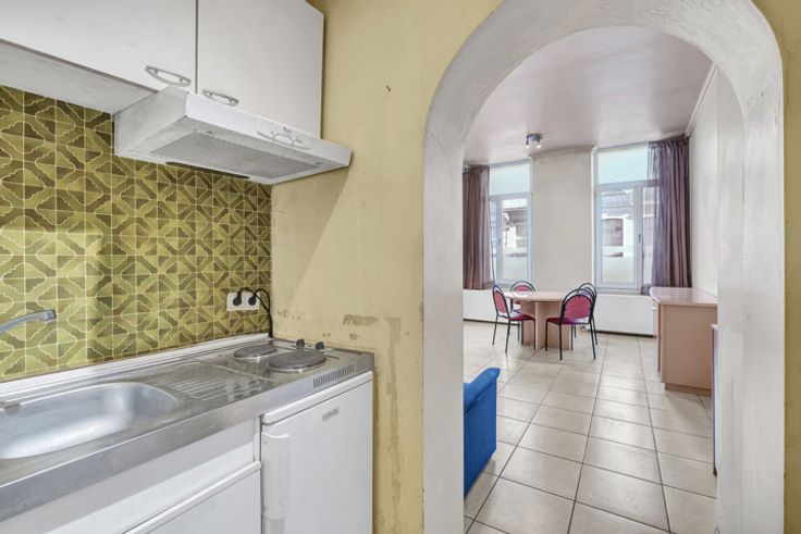 Voor meer informatie en/of een bezoek, bel 054 69 39 37 - In de Stationsstraat in Ninove bevindt zich deze kantoorruimte/bureel op het gelijkvloers van een kleine residentie met slechts vijf entiteiten. Het stadscentrum, station, winkels, scholen en horeca zijn op wandelafstand. Mits kleine opfrissingswerken, kan deze plek omgetoverd worden tot een gezellig bureel! Het omvat één open ruimte (30 m²) waarbij er een te moderniseren kitchenette aanwezig is, alsook een badkamer voorzien van douche, toilet en lavabo. Er is ook een kelderberging van 17 m² inbegrepen in de prijs.