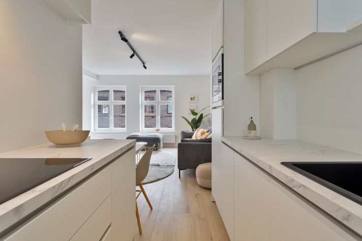 Nabij het Minnewater bevindt zich dit TRENDY & 100% gerenoveerd GELIJKVLOERSappartement met 2 SLAAPKAMERS. Dit ENERGIEZUINIG appartement is volledig VERNIEUWD (2024) en uiterst KWALITATIEF afgewerkt met de meest luxueuze materialen. Deze parel maakt deel uit v/e TOTAAL GERENOVEERD GEBOUW (nieuw geïsoleerd dak, nieuw schrijnwerk met dubbel glas, nieuwe leidingen...). Het app omvat: inkomhal, lichtrijke leefruimte (grote raampartijen), splinternieuwe open keuken (o.a. inductiekookplaat, combi-oven, vaatwas, ijskast met diepvriesvak, combinatie wasmachine/droogkast, ...), 2 ruime slaapkamers, nagelnieuwe badkamer (inloopdouche met rainshower, lavabomeubel, handdoekdroger, toilet). Nieuw: CV op aardgas (HR-ketel Vaillant), nieuwe ramen met dubbel glas, GOEDGEKEURDE elektriciteit, volledig geschilderd, incl. DESIGNverlichting (Dark), parket,... Fantastische locatie: op wandelafstand van de Vesten, winkels en openbaar vervoer. Extra: kleine residentie (=geen syndicus), 2 privatieve kelderbergingen inclusief. Mogelijkheid tot aankoop achterliggende GARAGEBOX. Luxueus wonen in hartje Brugge!