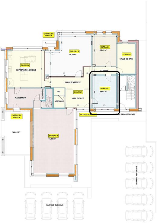 Espace de travail attenant à trois activités professionnelles (architecte, ostéopathe et énergéticienne).