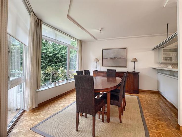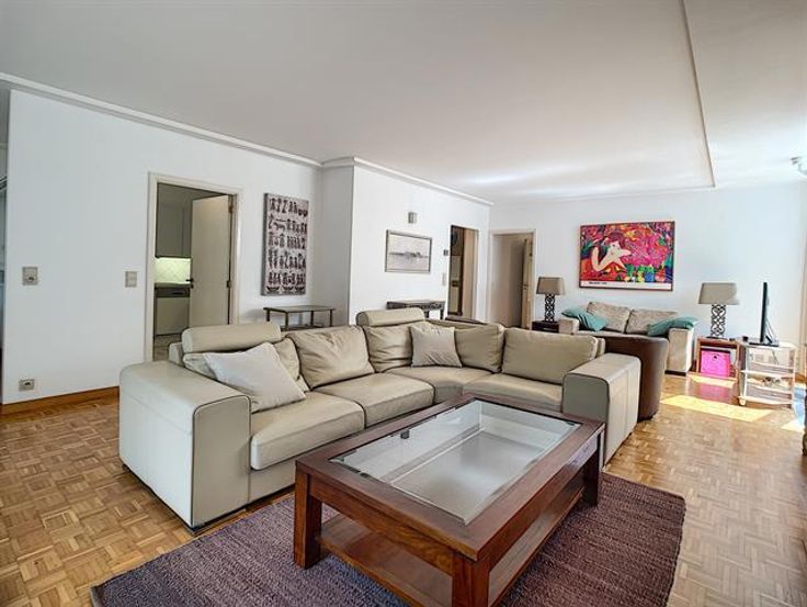 In de wijk Franklin Roosevelt, schitterend gemeubeld appartement met een totale oppervlakte van ± 148 m² in een luxe gebouw. Het bestaat uit een inkomhal met vestiaire, een grote en lichtrijke woonkamer (± 45 m²), een volledig ingerichte open keuken, 3 mooie slaapkamers (± 17 m² ± 14 m² en ± 12 m²), een badkamer en een doucheruimte. Mooi terras (± 11 m²) gelegen op het zuidoosten. Kelder inbegrepen en een parkeerplaats extra (150 €/maand). Zeer mooi meubilair, hoogwaardige materialen en dubbele beglazing. Kosten: € 150/maand (vast tarief voor onderhoud van gemeenschappelijke ruimtes, conciërge en parkeren). PEB F. Zo snel mogelijk ontdekken!