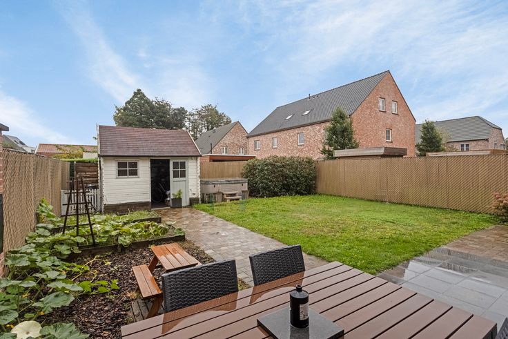 Deze woning ligt in een doodlopende wijk (verkaveling sinds 2015) op eenboogscheut van het dorp van Adegem. Perfecte ligging voor wie op zoek is naar rust maar niet wil inboeten aan bereikbaarheid (vlotte verbinding naar E34, N44, Maldegem en Eeklo (N9) (op 10 min van AZ Alma). Winkels en school op wandelafstand.Deze woning werd in 2015 gebouwd met veel aandacht voor hoogwaardige materialen en waar alle comfort aanwezig is.De belangrijkste troeven:- Lichtrijke ruime living met open, volledig uitgeruste keuken in landelijke stijl, incl. ruimekeukenberging / wasplaats onder de trap- Op de eerste verdieping zijn er 3 volwaardige slaapkamers waarvan 1 met dressing en 2voorzien van vliegenramen en ingewerkte verduisteringsgordijnen, alsook een ruimebadkamer met bad én douche en lavabomeubel uit natuursteen / steigerhout om aan tesluiten bij het landelijke karakter van de woning- Extra troef is de ruime zolder (vaste trap) waar ook alle voorzieningen aanwezig zijn om eventueel een extra ruime slaapkamer of hobbyruimte te maken- Ruime oprit en carport (5.5m x 3m) met houten poort (plaats voor 3 auto’s)- Zuidoost gerichte tuin (160m²) met tuinhuis, moestuinbakken en jacuzzi (evt. extra overte nemen) waar je de hele dag kan genieten van de zon. Ruim terras in natuursteen en opriten paadje naar tuinhuis in platines. De voorgevel is westelijk gericht.Elektrische zonneluifel aanwezig.- Zeer energiezuinig (E-peil van 51 - A) met 6 zonnepanelen en een ventilatiesysteem