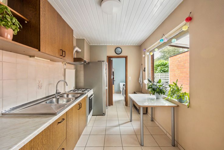 Ben je op zoek naar een woning die je volledig naar eigen smaak kunt opfrissen? Deze charmante woning, gelegen tussen Brasschaat en Maria ter Heide, biedt jou de ideale kans. Met scholen, winkels en de autostrade vlakbij, geniet je van een centrale ligging in een rustige, groene omgeving. Indeling van de woning: Inkomhal: Lichte inkomhal op tegelvloer die leidt naar de leefruimte. Leefruimte: Gezellige woonkamer met tegelvloer, ideaal om te ontspannen. Keuken: Functionele keuken met toegang tot de tuin. Badkamer: Badkamer met bad, lavabo en toilet, klaar voor een persoonlijke update. Eerste verdieping: Nachthal: Ruime nachthal met toegang tot twee slaapkamers. Slaapkamers: Twee slaapkamers van ±17m² en 16m² op laminaat. Extra's: Bergzolder: Handig voor opslag. Kelder: Ruime kelder van ±18m². Kruipruimte: Voorbereid voor centrale verwarming (momenteel gaskachels). Tuin: Grote tuin met tuinhuis en handige doorgang. Bijzonderheden: PVC en aluminium ramen met dubbel glas, dakisolatie, conforme elektriciteit. Een woning met veel potentieel op een toplocatie! Bel 03 535 12 75 voor een bezichtiging. BEWOONBARE OPPERVLAKTE De vermelde “bewoonbare oppervlakte” is gebaseerd op de “bruikbare vloeroppervlakte” zoals vermeld in het EPC. RENOVATIEPLICHT Gebouwen met een energielabel “E” of “F” zullen verplicht binnen de 5 jaar energetisch gerenoveerd moeten worden en dit zodat ze minstens over een energielabel “D” beschikken. Bij dit pand zal de renovatieplicht dus van toepassing zi
