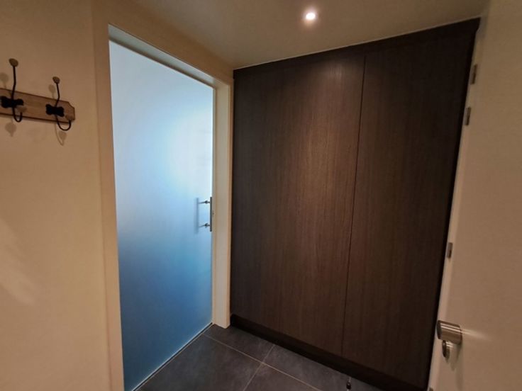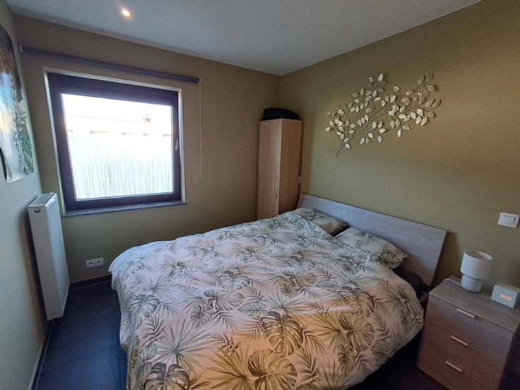 Inkomhal met ingemaakte vestiairekast, ruime berging/wasplaats, lichtrijke woonkamer met open mooi afgewerkte keuken voorzien van alle toestellen, groot schuifraam naar het zonnig terras, 1 slaapkamer, apart toilet en badkamer met inloopdouche.
