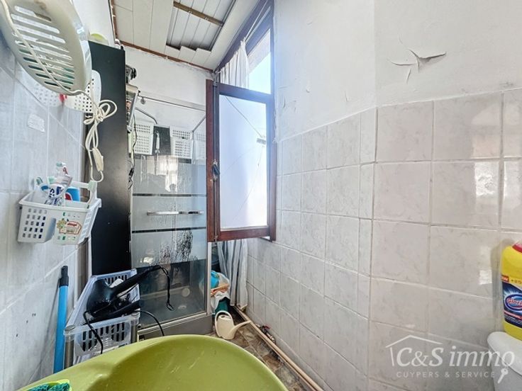 De tweede verdieping biedt een ruime keuken en eetkamer, drie slaapkamers en een tweede badkamer met douchecabine, toilet en lavabo. Beide verdiepingen beschikken over een apart terras. Dit renovatieproject biedt de mogelijkheid om het pand volledig naar eigen inzicht te moderniseren en zo het rendement te maximaliseren. Aparte nutsvoorzieningen zijn al aanwezig, wat het project nog aantrekkelijker maakt.