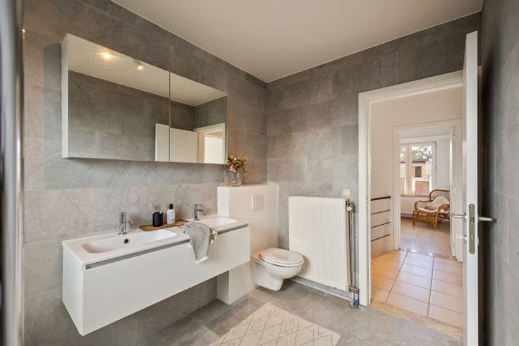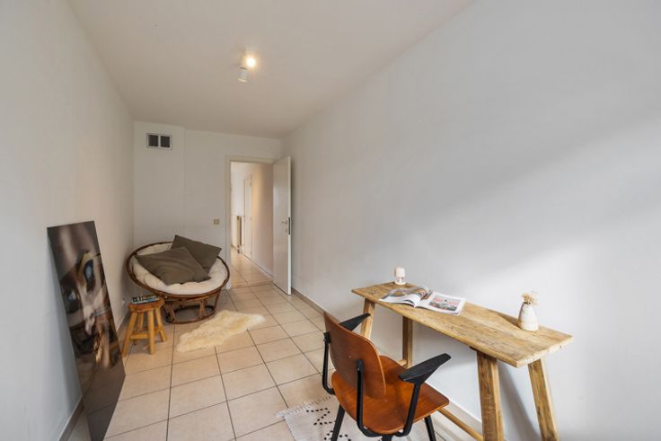 Recent gerenoveerde rijwoning op een rustige ligging tussen Ekeren Donk en Ekeren centrum. In deze kindvriendelijke wijk vind je de rust maar toch ben je overal snel bij. Indeling: Gelijkvloers (65m²): inkomhal op tegels met trap naar verdieping,  garage voor 2 wagens achter elkaar. Aansluitingen wasapparatuur. Bureau/4de slaapkamer/hobbykamer. 1ste verdieping (59m²): overloop met toilet, living (ca.35m²) in L-vorm op parket met openschuivende deuren naar terras, volledig ingerichte keuken met toegang tot terras. 2de verdieping (53m²): traphal, 2 slaapkamers (ca.15m²) op laminaat, 3de slaapkamer (ca.6,30m²) op laminaat, nieuwe badkamer (ca.6,50m²) met inloopdouche, dubbele lavabo en toilet. - CV op aardgas. - Terras met trap naar tuin. - Elektrische keuring conform. EPC B. Asbestvrij.