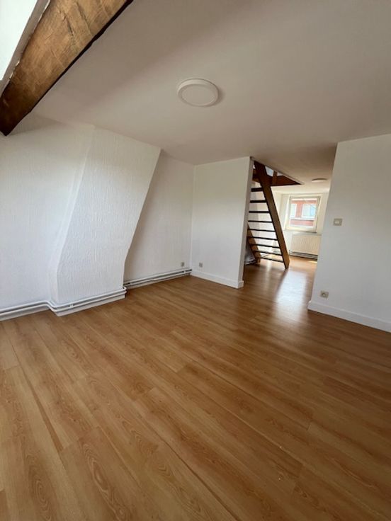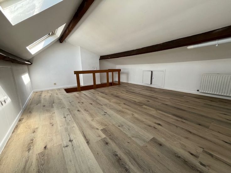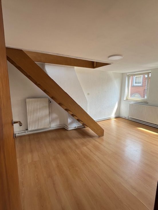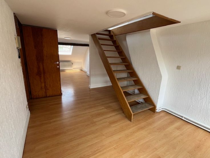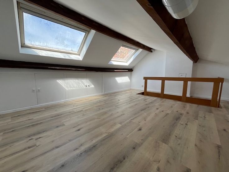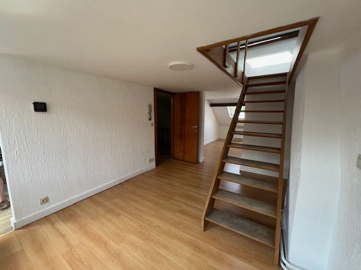 Ce duplex se situe au 2ème étage d'une maison composée de trois logements. Il est composé d'un hall, d'un living, une salle-à-manger, une cuisinette, d'une salle de bain et à l'étage d'une chambre. Il est très lumineux. Les 60 euros de charges sont une provision pour l'eau, l'électricité des communs et l'assurance.