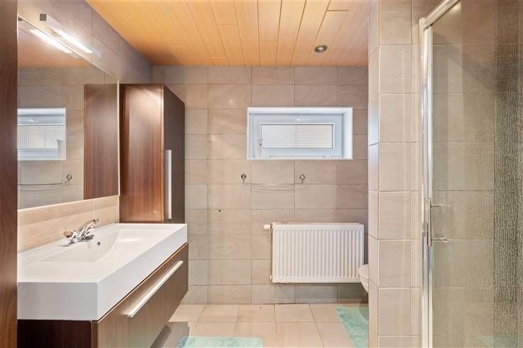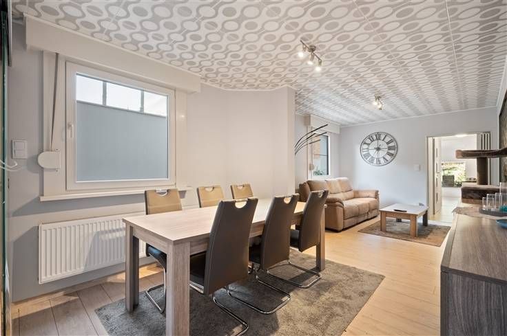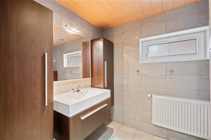 Op ± 800m van het dorpsplein van Bonheiden, ligt deze instapklare woning, met slechts 1 aanpalende buurgevel. Met een EPC-score van 172 kW/m²/jaar (label B), scoort het huis behoorlijk, dankzij de in het EPC vermelde 15cm dakisolatie, 5cm muurisolatie en gedeeltelijke vloerisolatie (50m²) met 5cm dikte. Parkeren kan u hier in de beklinkerde voortuinstrook, voor de afstandsbediende garagepoort. Qua graadmeters van comfort, valt ons oog op een aantal positieve indicatoren: elektrische rolluiken, digitale meters, degelijke PVC-ramen met muggenramen, sierhaard, condensatieketel op gas, kelder met betonnen trap, sierpleister op twee gevels, tuinomheining met betonplaten en draad, etc. De tuin beschikt over een terras met pergola. Van de 3 kamers, mogen we zeggen dat er in iedere kamer een dubbel bed kan geplaatst worden. Een kamer, die nu in gebruik is als “game room”, beschikt over een compacte, geventileerde en suite douchekamer, voorzien van inloopdouche (regenfunctie), lavabomeubel en hangtoilet. De hoofdbadkamer is voorzien van een douchecabine, een hangtoilet en een lavabomeubel met spiegel en kolomkasten. De eetkeuken met blinkende fronten en kwaliteitsapparaten, krijgt veel licht binnen via de ramen en biedt uitzicht op terras en tuin. Qua apparaten spotten we: oven plus gasvuur, hoge koelkast, dampkap, microgolf en vaatwasser. Pendelaars appreciëren dat de Tangent van Mechelen slechts op ± 3,6km rijden ligt, wat leidt tot een goede verbinding naar Antwerpen en Brus