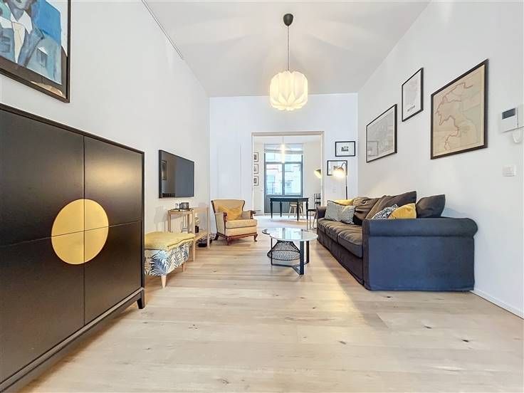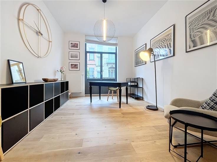 Quartier Dailly - Luxueus volledig gemeubeld 2-slaapkamer appartement van +/- 130m² met een terras van +/- 20m². Op de 1ste verdieping / 3 verdiepingen: Uitgebreide inkomhal van +/- 6m² met een gastentoilet, woon/eetkamer van +/- 50m² met massief eiken parketvloer, een volledig ingerichte open keuken van +/- 10m² (keramische kookplaat, oven, koelkast/vriezer, afzuigkap, vaatwasser, broodrooster, koffiezetapparaat), een bijkeuken met ruimte voor een droogkast en wasmachine. Op de begane grond, een nachthal van +/- 8m² met bergruimte, een wasruimte, een toilet, een slaapkamer van +/-10m² met aangrenzende doucheruimte, een ouderlijke slaapkamer van +/-15m² met een privé badkamer van +/- 8m², een ruime dressing van +/- 8m², een terras van +/- 20m². Faciliteiten en comfort: Volledig gerenoveerd in 2024, duurzame materialen van topkwaliteit, LED sfeerverlichting, volledig gemeubileerd (keukengerei, beddengoed, volledig servies, stofzuiger, enz.), gepantserde deur, dubbele beglazing, toegangstelefoon. PEB C. Kosten: 65€/maand (opstalverzekering, elektriciteit voor gemeenschappelijke ruimtes). Individuele meters voor water, gas en elektriciteit. Beschikbaar per direct