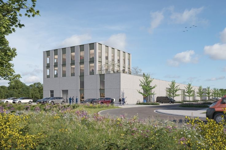 Dit nieuwbouw bedrijfsgebouw is direct aan de E19/R0 en afrit 17 (Anderlecht Industrie).