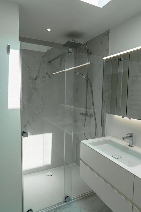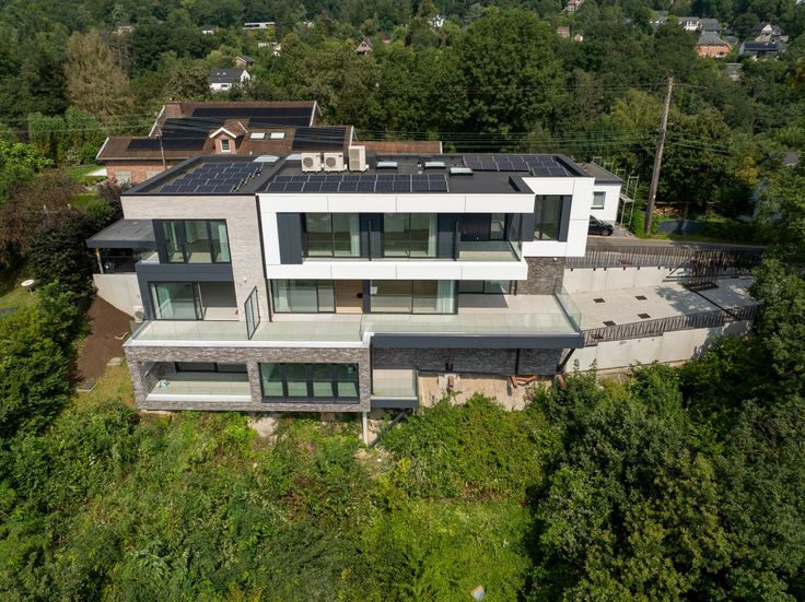 Bien unique neuf d’exception (finitions en cours) surplombant Tilff et proche du centre composé de 2 maisons semi-jointives de gd standing et ultramodernes d’une superficie de +/- 624m² bruts pour les 2 maisons et terrasses pour 115m² au total avec PEB A conçu pour aborder les normes énergétiques des prochaines décennies avec en priorité la réduction des consommations et un confort élevé.Vue panoramique et imprenable à 180° sur l’Ourthe,la colline de Cortil et le centre de Tilff que vous pourrez admirer depuis les pièces de chaque maison.Architecture Californienne,matériaux de finitions et équipements dernière génération(châssis alu triple vitrage solaire et acoustique,stores intégrés,VMC,chauffage sol,clim réversible,ascenseur (gde maison), isol acoustique des parois,panneaux solaires,citerne eau de pluie 20.000L, etc.).La gde maison comprend 3 suites (poss 4 suivant la config choisie), dressings, sdb et sdd,gdes terrasses, garage pour 5 voit (possibilité 7) équipé pour véhicules élect et 1 ascenseur (gde maison) desservant chaque étage.La petite maison comprend 3ch (dont 1 suite),2 sdd,3 terrasses et 2 carports équipés pour 2 véhicules élect. Chaque maison comprend cuisine équipée,dressings,placards,rideaux,stores,murs peints, clim,système d’alarme,vidéo surv,clôtures,barrières élect métalliques et compteurs triphasés.Prix des 2 maisons : 2.690.000€ HF + HTVA. Poss TVA 6% sur 1 des 2 maisons jusqu’au 31/12/24 et poss de reprise de patrimoine immo comme terrains, etc.