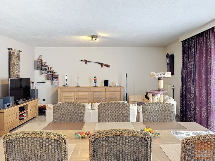 Dit aangenaam appartement van 101m2 ligt op de tweede verdieping van een mooie residentie, nabij het centrum van Asse en op 5 minuutjes van de Ring. De lift brengt je naar de tweede verdieping, waar dit net appartement met 2 toffe terrassen op je wacht. Via de inkomhal kom je langs de ruime berging en toilet in de leefruimte met open keuken. De woonkamer is ruim en voelt nóg groter aan door de verbinding met het terras en de keuken. Langs beide kanten van het appartement heb je toegang tot de terrassen, zon op elk moment van de dag. Tafeltje, stoelen,planten en bloemen vinden er zeker hun plek.  Via de nachthal ga je naar het slaapgedeelte. 2 slaapkamers en badkamer met douche. In de 2 de slaapkamer staan er praktische maatkasten. Een zeer ruime garage is verplicht bij aan te kopen voor 20.000 euro. Maandelijks gemeenschappelijke provisie bedraagt 160 euro, all in, behalve je eigen verbruik.  Het appartement is pico bello in orde dus valiezen pakken en verhuizen. Last but not least een EPC "B" van slechts 121kwh/jaar. Elektriciteit conform. Waarop wachten om een bezoekje in te plannen ? Meer inlichtingen Immo Clicking Wemmel 02-608 17 10 of Ann Steppé 0493/56 51 81    Renovatieplicht: nee