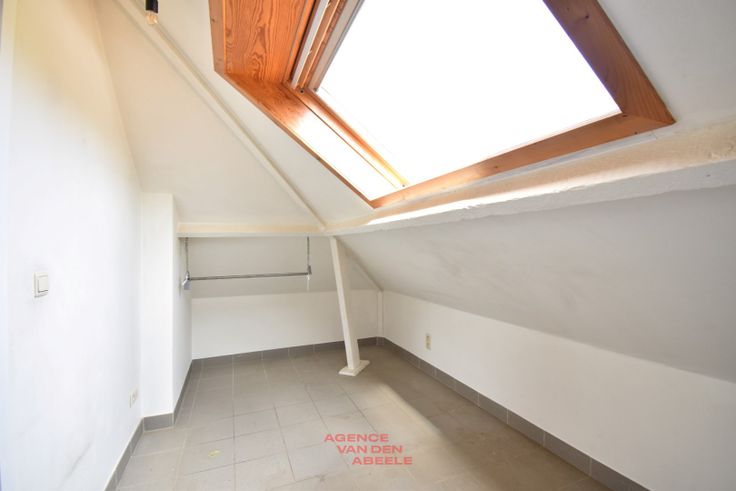Dit gezellig appartement met 1 slaapkamer is gelegen vlakbij het centrum van Sint-Kruis. Alle winkels en openbaar vervoer bevinden zich op wandelafstand. De inkomhal geeft ons toegang tot alle ruimtes in het appartement. De woonkamer heeft grote velux ramen waardoor we een rijke invloed aan licht hebben. Er is een open keuken die ingericht is met dampkap, koelkast en keramische kookplaat. Er is 1 slaapkamer voorzien. Daarnaast is er nog een trap voorzien naar boven waar zich een kleine polyvalente ruimte bevindt. De badkamer is ingericht met een douche, lavabo en toilet. In het appartement is er bergruimte voorzien en eveneens een aansluiting voor een wasmachine. Cv individueel op aardgas Maandelijks 20 € algemene onkosten