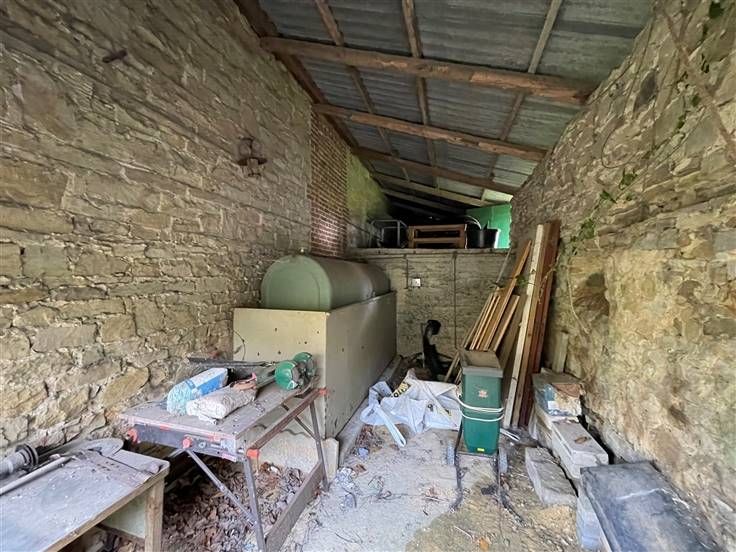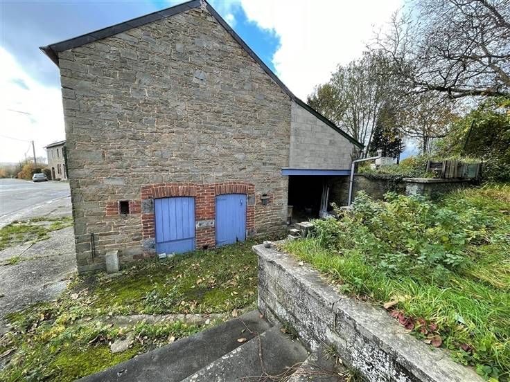 Garage + annexe en pierres avec possibilité d'aménagement du 1ier étage et parkings. PEB à E, CC mazout, DV en PVC, RC 285€ , poss frais réduits, belle situation au calme.