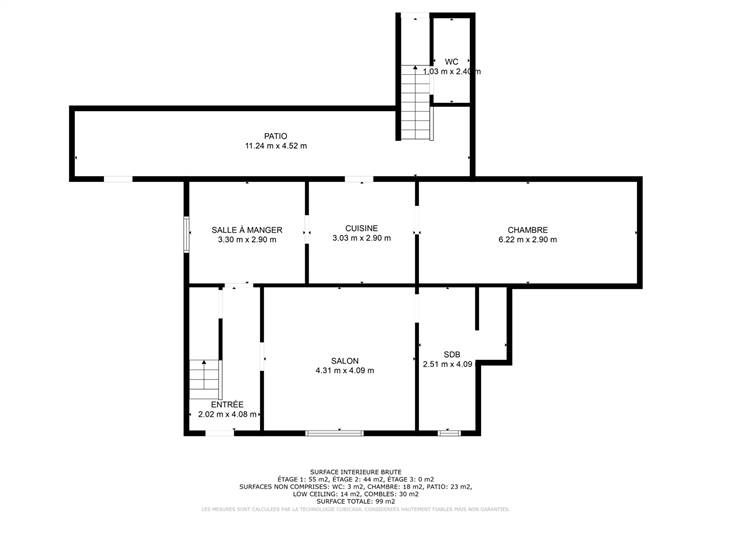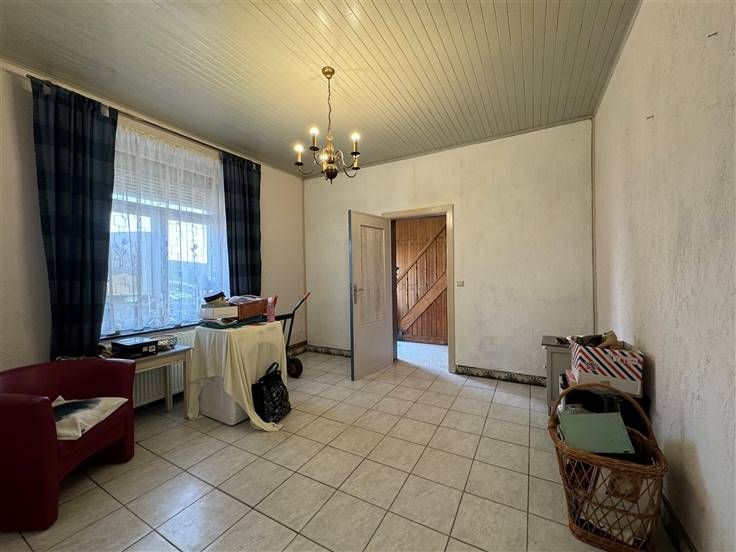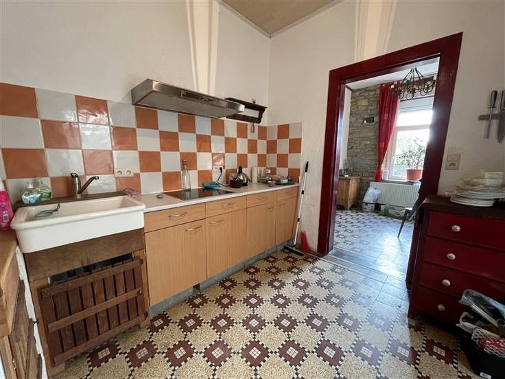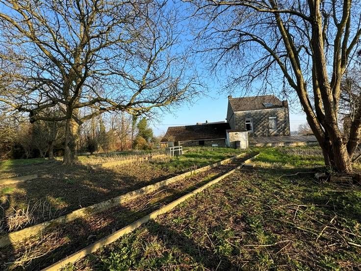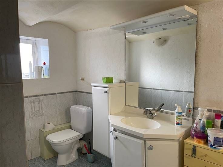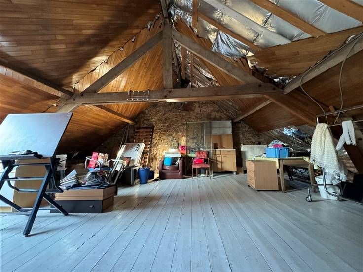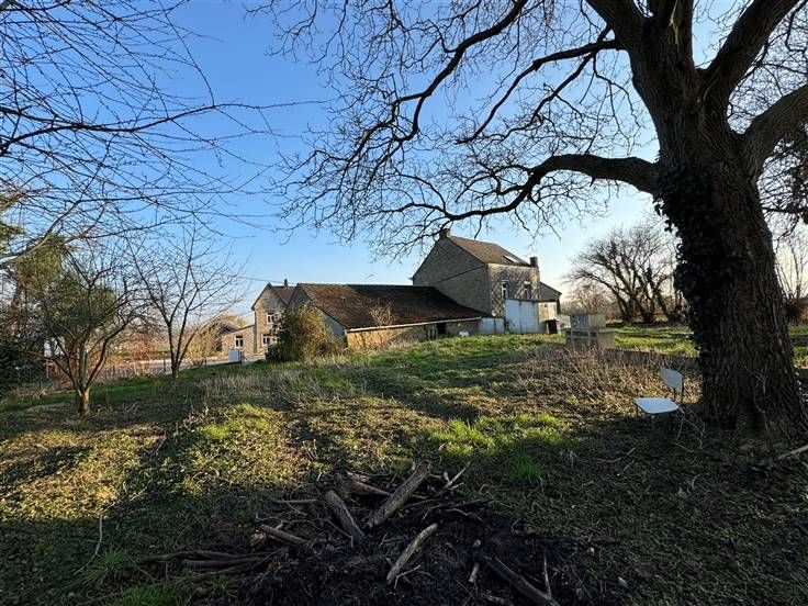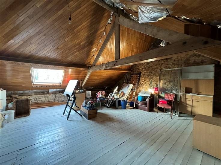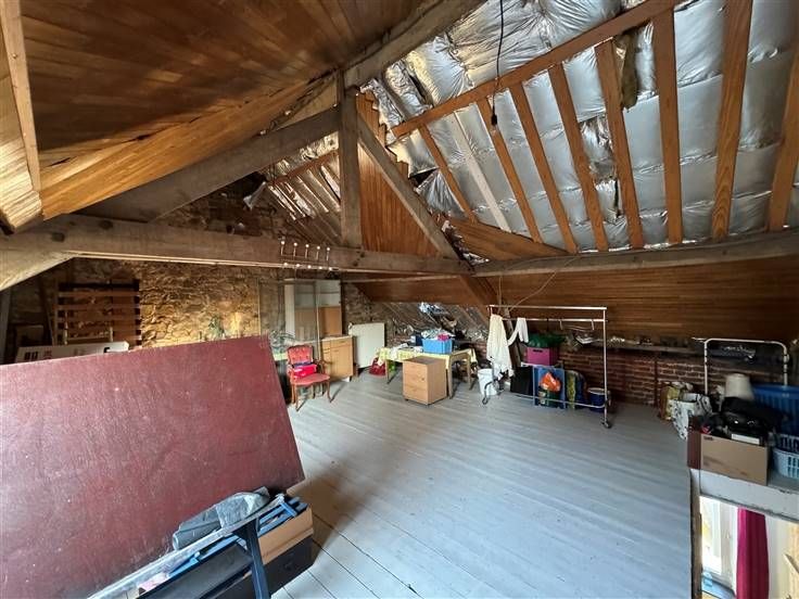 Sorry er is geen nederlandse vertaling beschikbaar. Maison villageoise 4 façades, 3 ch, poss 5 (grenier aménageable), salle de douche (rez), salon, sàm, cuisine semi équip, cave/réserve, arrière cuisine/patio.