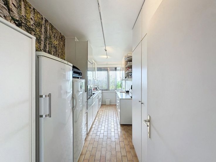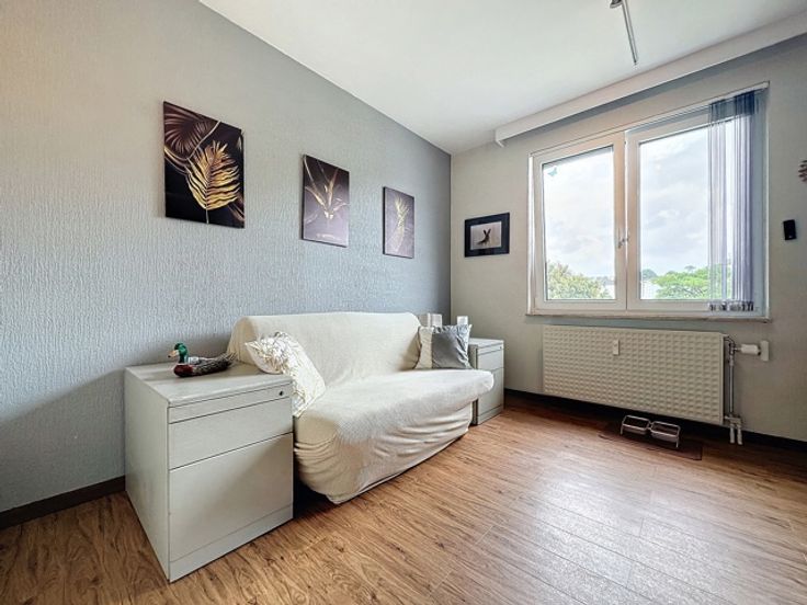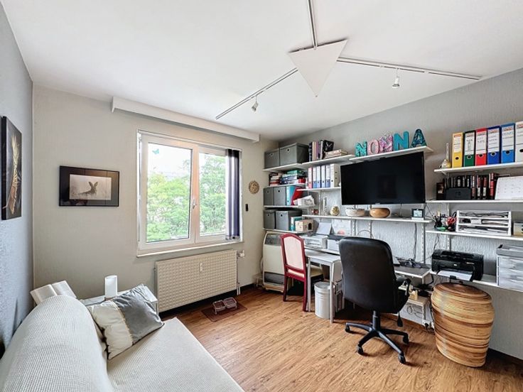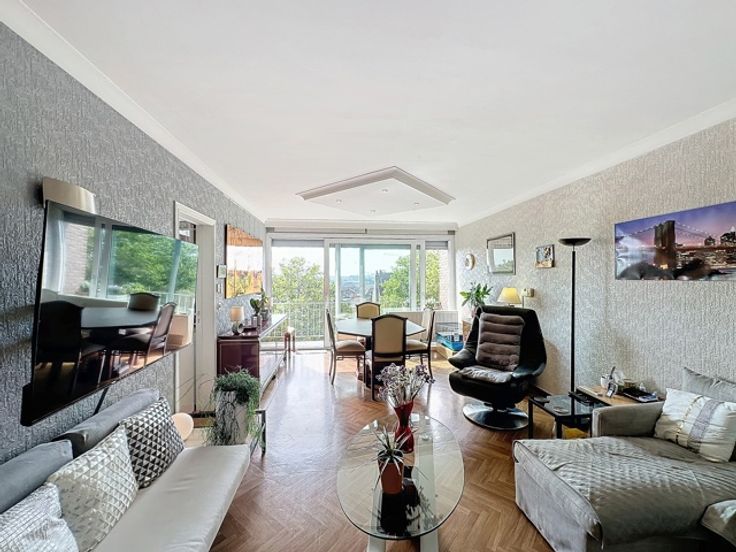A quelques pas des commerces, à proximité des transports en commun (ligne de tram 82 direction Gare du Midi et Uccle), vous trouverez un appartement tout à fait particulier de par sa vue imprenable sans aucun vis-à-vis, niché au-dessus de tout, au 6e étage d'une petite copropriété de 13 appartements. En entrant à votre gauche, une belle cuisine super-équipée avec deux accès, puis un superbe séjour donnant sur le balcon équipé d'une banne solaire, deux belles chambres de 14 et 10 m² donnant sur un deuxième balcon, un wc séparé et une salle de bain avec baignoire/douche. L'air conditionné et un insert à bois vous permettent une très faible consommation en termes de charges mensuelles. Une cave de stockage vient compléter l'ensemble. Possibilité d'acheter un garage fermé avec l'appartement en supplément pour 35 000 euros.