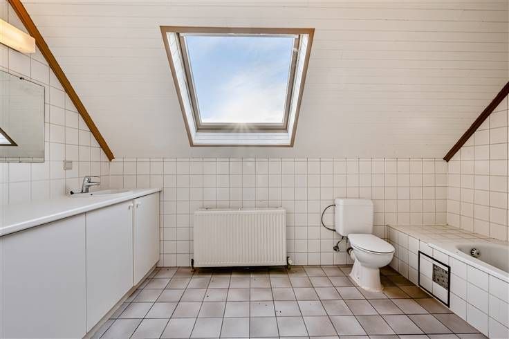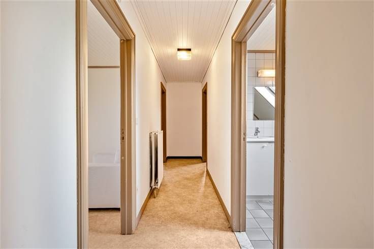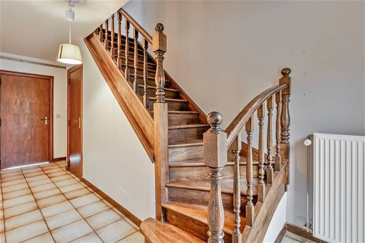 De eerste woning bevat op het gelijkvloers een inkomhal met gastentoilet met links een aparte bureauruimte en rechts de garage. Vervolgens bereiken we de ruime leefruimte met naastgelegen keuken. Vanuit de keuken bereikt men nog een berging, douche, toilet en een bijkeuken dat tevens dient als achterinkom. Op de eerste verdieping bevinden zich 3 slaapkamers, een badkamer en een linnenkamer. De tweede woning bevat op het gelijkvloers een inkomhal met gastentoilet die ons vervolgens tot de ruime leefruimte brengt. Achtergelegen bevindt zich de keuken met vervolgens aanpalend een zeer ruime bijkeuken die tevens dient als achterinkom, een toilet en douche. Op de eerste verdieping bevinden zich 3 slaapkamers en een badkamer.