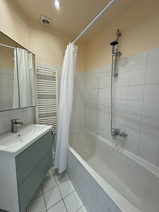 : 1 Kelder . : Dag hal: m², Toilet, Woonkamer: 30 m², Keuken: 4 m², Wasruimte: 1 m², Badkamer, Slaapkamer: 17 m², Terras: 22 m² . : Kelder, Wasruimte, Terras, Fietsenstalling . : Oven, Koelkast, Kap, Afwasmachine, Keuken meubels, Enkele wastafel, 4 Gasbranders, Diepvriezer . : Energie dienst: 299 kwh, CO² uitstoot: 59 Kg Co2m²an, EPC certificaat nb. . : Kabel TV, Intercom, Telefoon kabel, Vuur alarm . : Luik . : PVC, Dubbel glas . : Vloertegel, Houtvloer . : Verf . : Bus: m, Sporthal, Winkel, Kinderdagverblijf, School: m, Metro: m, Supermarkt, Tram: m . : Zicht op tuinen . : Kosten