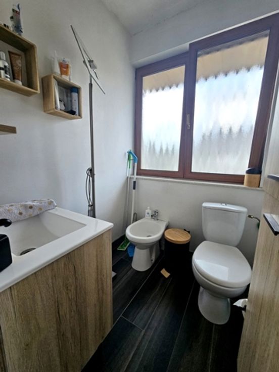 A l'étage : hall de nuit, 3 chambres privatives, sanitaires avec wc, bidet, lavabo.