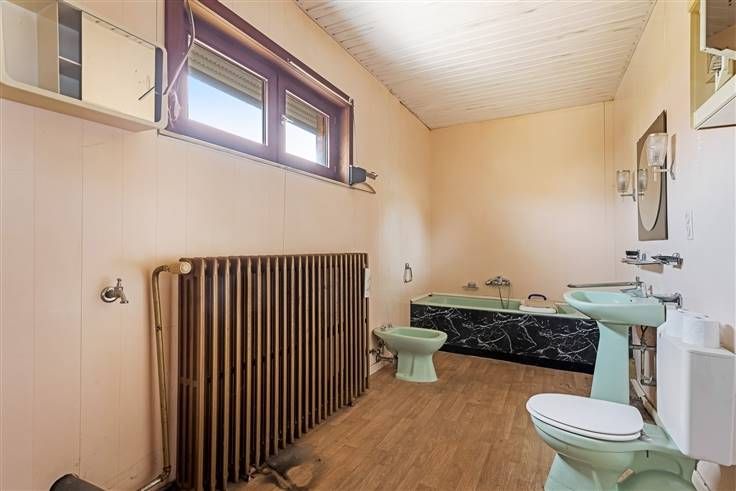 De inkomhal biedt toegang tot de ruime woonkamer, die baadt in het licht dankzij de grote ramen. De woonkamer grenst aan de aparte eetkamer en de ruime keuken. Op het gelijkvloers vinden we ook de badkamer, die uitgerust is met een bad, lavabo, bidet en toilet. Op de verdieping bereiken we via de nachthal de drie slaapkamers.