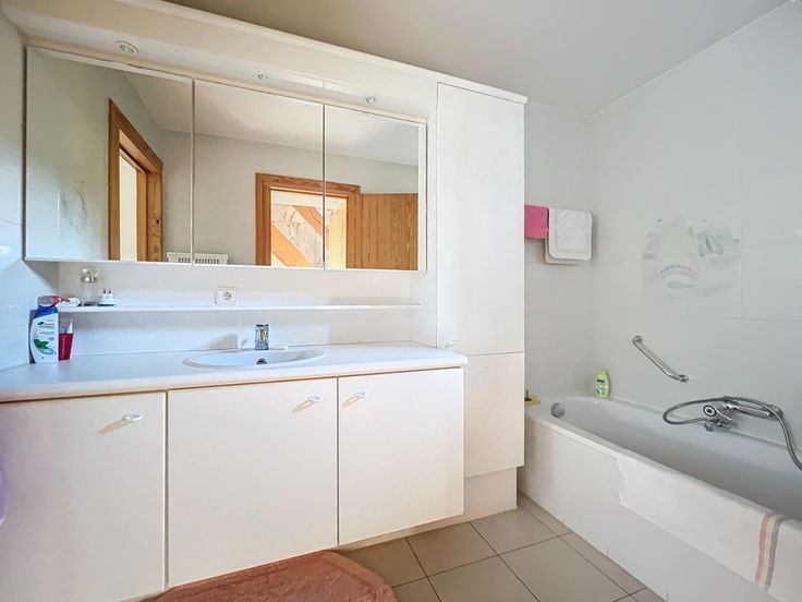Inkomhal, WC, woonkamer, keuken, berging, slaapkamer en badkamer (lavabo en ligbad), terras met goed onderhouden tuin. Op het verdiep zijn er 3 slaapkamers en een badkamer (lavabo, WC en douche). De woning is volledig onderkelderd en heeft plaats voor drie wagens, en er is ook een wasplaats. Er is een regenwaterput van 5000L. Ref ODK-31