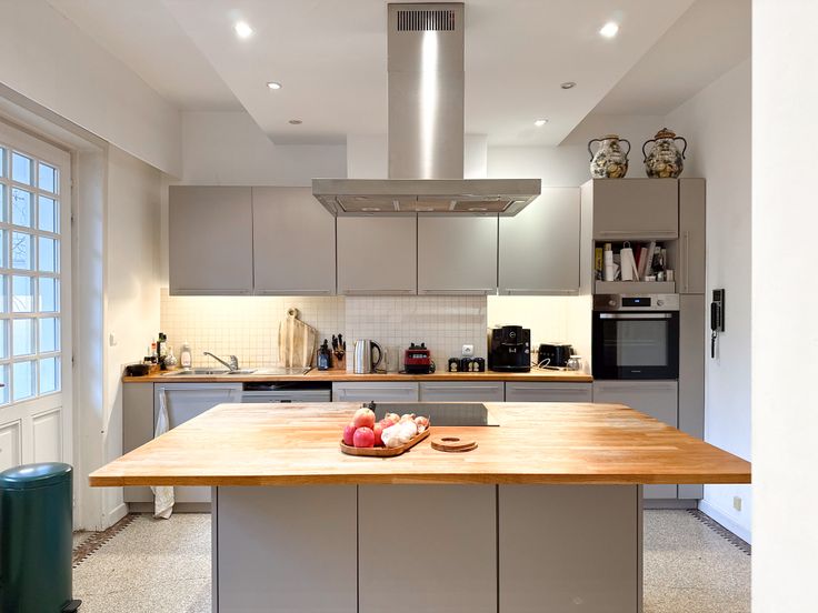 Het huis opent naar een inkomhal die leidt naar een volledig uitgeruste keuken die uitkomt op de tuin en een prachtig bureau.