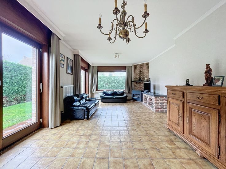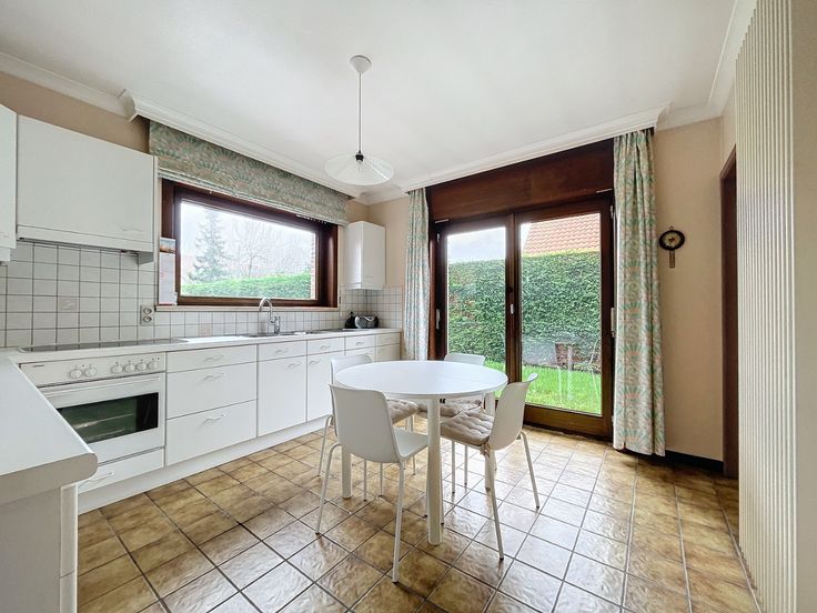 Zeer degelijke en zongerichte woning met uiterst rustige ligging op enkele minuten wandelen van Koksijde-Dorp. De woning bestaat uit: inkomhal, garage, living met eetkamer, ruime keuken, afzonderlijk toilet, ruime slaapkamer en badkamer (GLV). Verdiep: twee ruime slaapkamers, mogelijkheid tot het creëren van een tweede badkamer. Zongerichte tuin. De witte gevel is illustratief. Ref. K-55